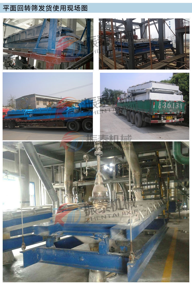 平面回转筛在食盐、白砂糖、纯碱、尿素、复合肥、硅粉、硅砂、陶粒砂、玻璃微珠、氧化铝、石灰石、硝酸铵、磷酸盐、氢氧化钾、木粉、塑料颗粒等物料的除杂、分级中都有广泛的应用。